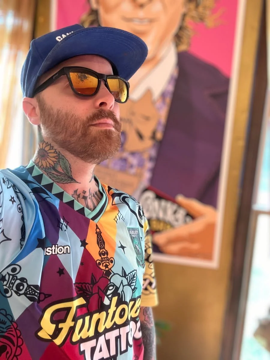 After experiencing personal loss, Sheldon leaned fully into the medium, channeling grief into his work and developing a distinct style influenced by traditional tattoo flash. His work blends bold, graphic imagery with glass, creating pieces that feel both familiar and unexpected.