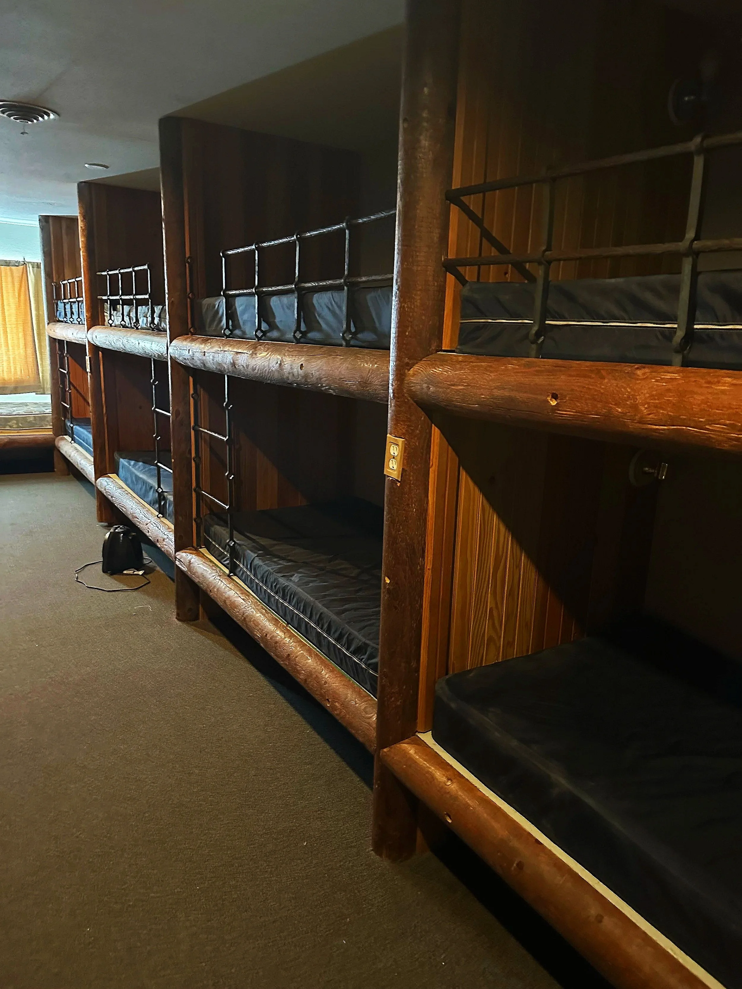 Each ticket includes both a top and bottom bunk, so you have space for your gear and can choose where you sleep. Limits group sizes to 10 per lodge bunkroom.