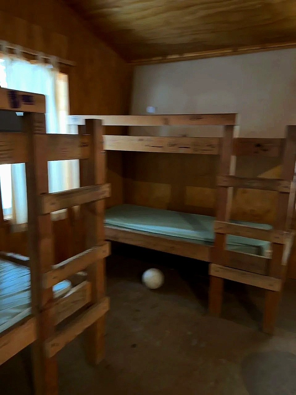 A shared bunk in the Main Lodge, located directly below the main hall. Each room is all-gender and accommodates up to 10 campers.